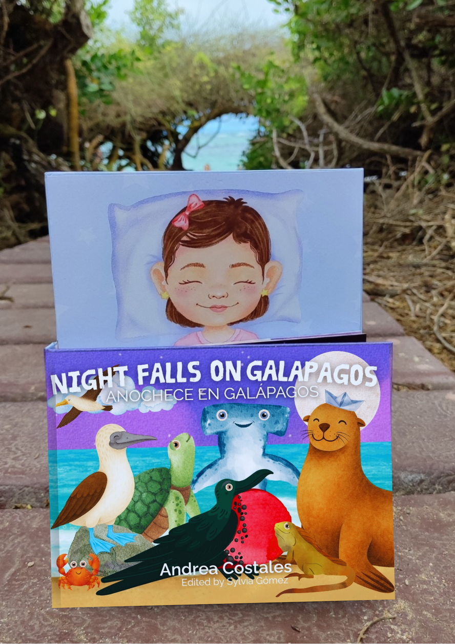 La maternidad ha sido una de mis fuentes más potentes de inspiración, y Anochece en Galápagos es ya mi quinta publicación independiente. Tal vez habrás visto mis obras algún momento en lugares como Librimunidi, Buscalibre, La Española, The Owl y mis libros para bebés en BEBEMUNDO.